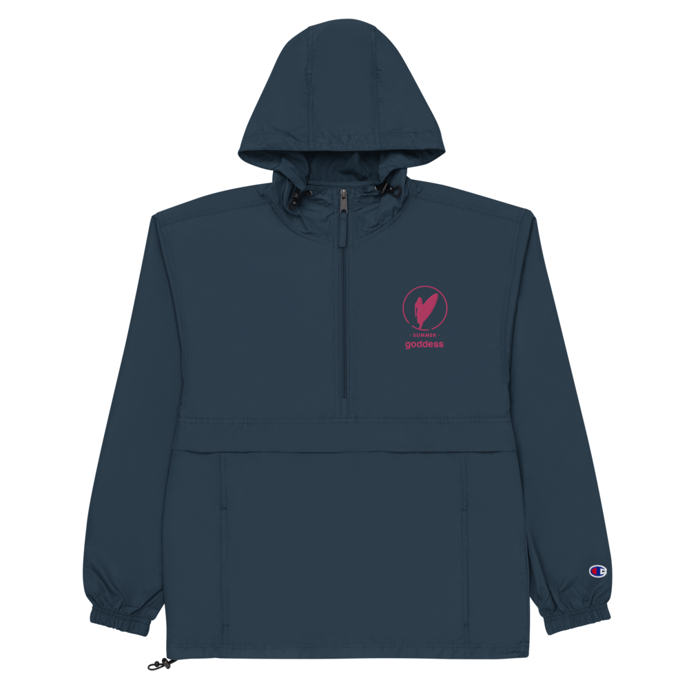 Protect yourself from the elements with this Champion packable jacket. This wind and rain resistant polyester jacket with a detailed embroidery design has a practical hood, front kangaroo pocket, and zipped pouch pocket which you can pull out and use to scrunch the jacket into for convenient storage.